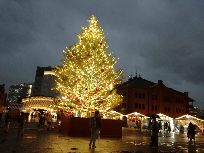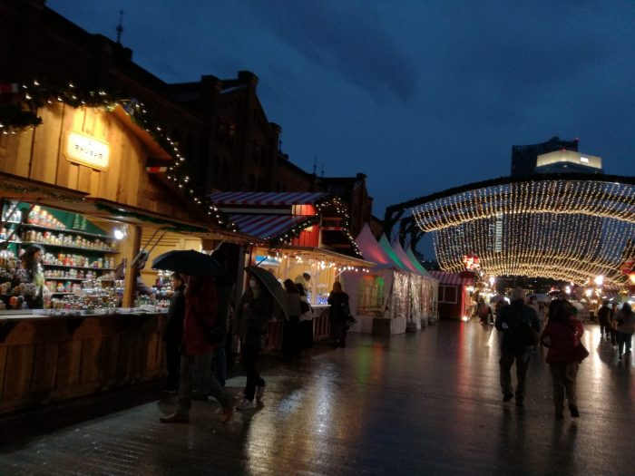 赤レンガ倉庫の前では、ドイツのクリスマスマーケットを模したイベントが開催されており