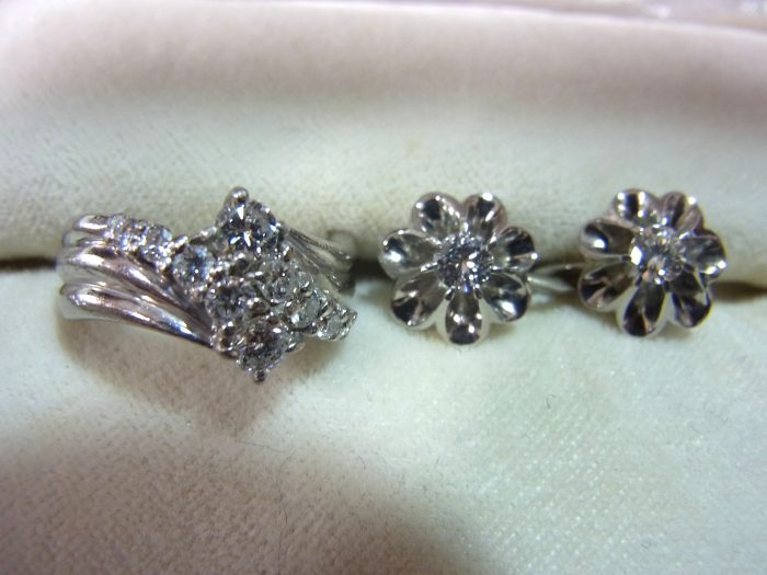 デザインを打ち合わせる中で、右側のピアスのダイヤもお使いになりたいということで合わせて12粒のダイヤモンドを使ってリフォームすることになりました。