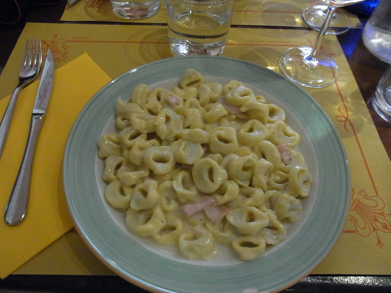 プリモピアットは、クリームとハムのトルテリーニ(Tortellini panna e prosciutto)を頼みました。