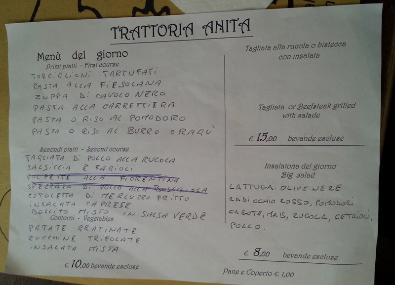 トラットリア・アニタはトスカーナの家庭料理を提供していて、安く美味しくお食事ができる店として有名です。