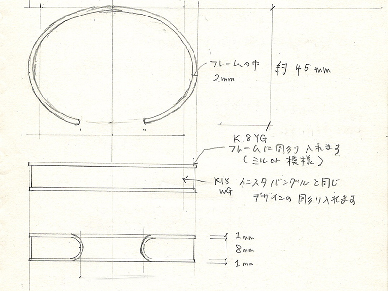 そしてやり取りをさせて頂く中で、お客様からホワイトゴールドとイエローゴールドのコンビで作ることはできますかとご要望をいただきました。