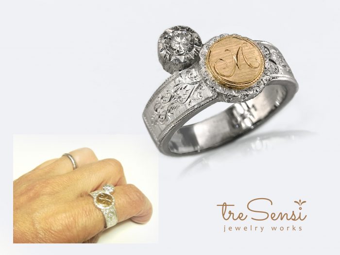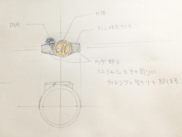 以前オーダーにて制作しましたイニシャルリングをベースに