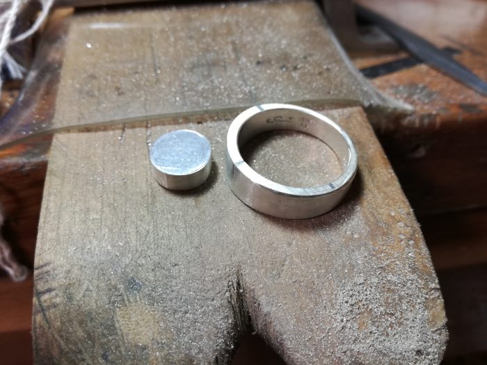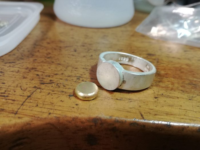 イニシャルが入る金のパーツとなる部分の地金も溶かして成形していきます。